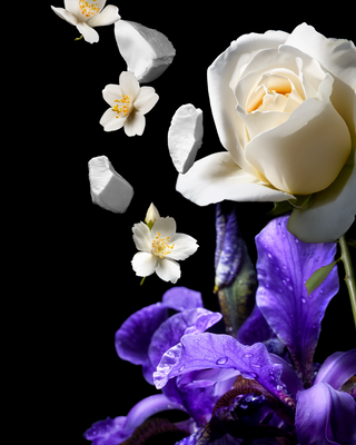 En tête, fleurs blanches innocentes et baies roses font place à un cœur envoûtant de roses nacrées et d’iris. Une caresse parfumée qui vient se déposer sur un fond d’ambre et de musc ensorcelant…